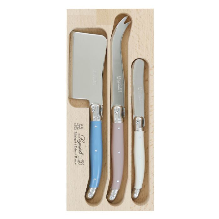 Andre Verdier three piece cheese knife set - cornflower blue/pink/ivory