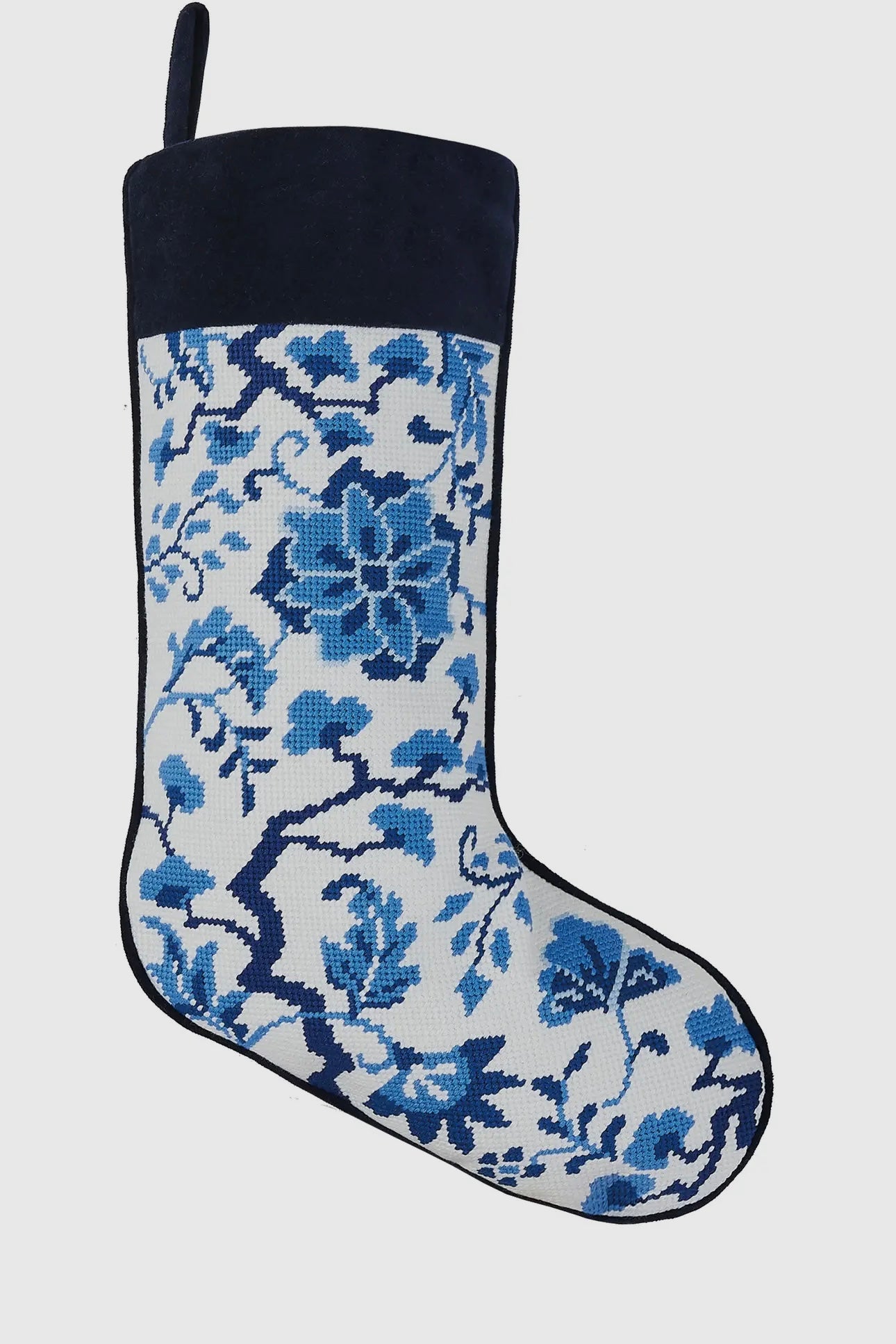Chinoiserie flower embroidered needlepoint stocking