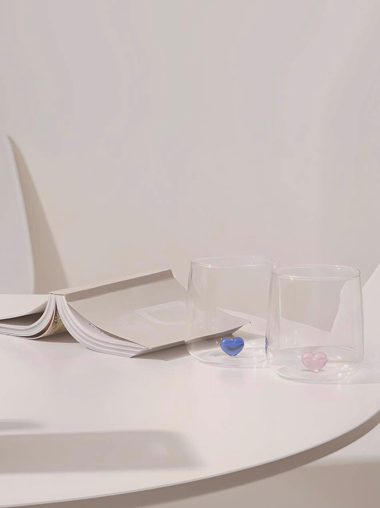 L’amour glass by Tutu - a perfect blend of simplicity, cuteness and artistic flair. The cup features a transparent body with a stunning 3D standing heart at the center of the base. Made with borosilicate glass, this cup is safe, non-toxic, and can withstand temperature shock.