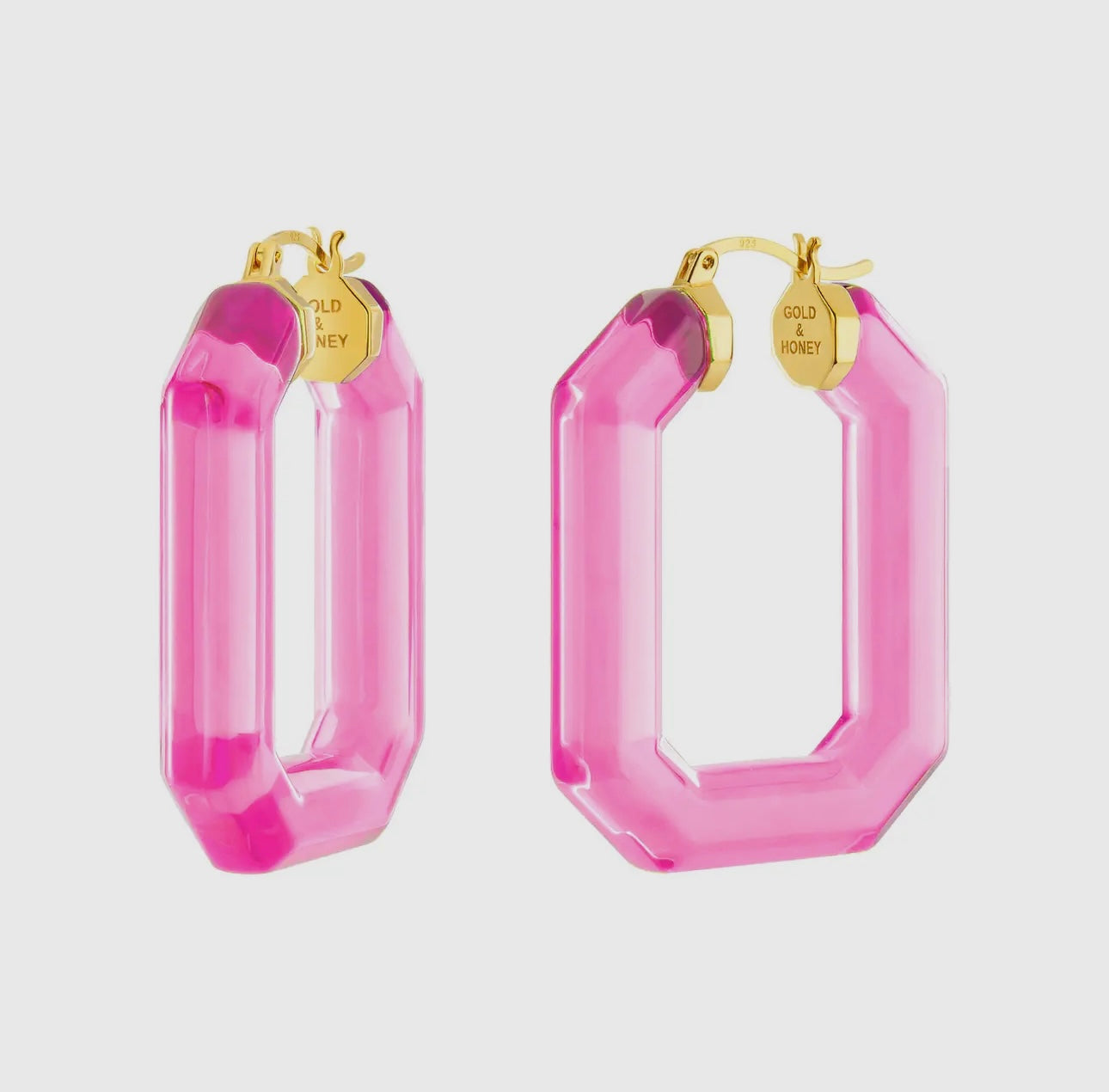 Such a fun and elegant way to spice up your jewellery box 🩷! These gemstone cut lucite hoops are a unique statement earring made for every and any occasion. The bright colour reflects with a deep and vibrant POP!