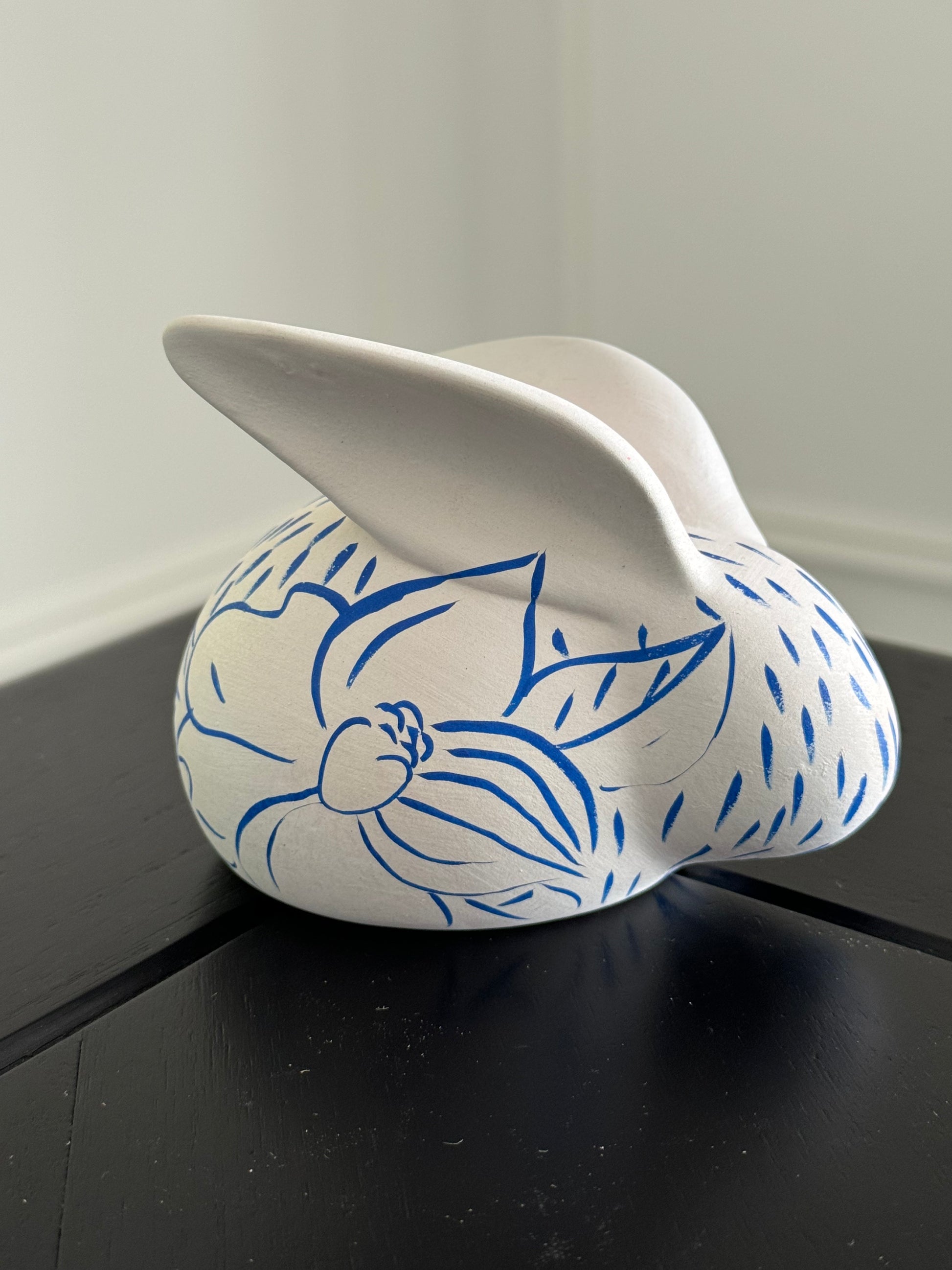 This gorgeous ceramic bunny has been hand-painted in a beautiful blue magnolia pattern by US artist Jessica Reynolds, giving the perfect timeless objet d’art. Teamed with its equally cute larger companion, these two make the sweetest duo. Please note that each piece of art has its own unique pattern.