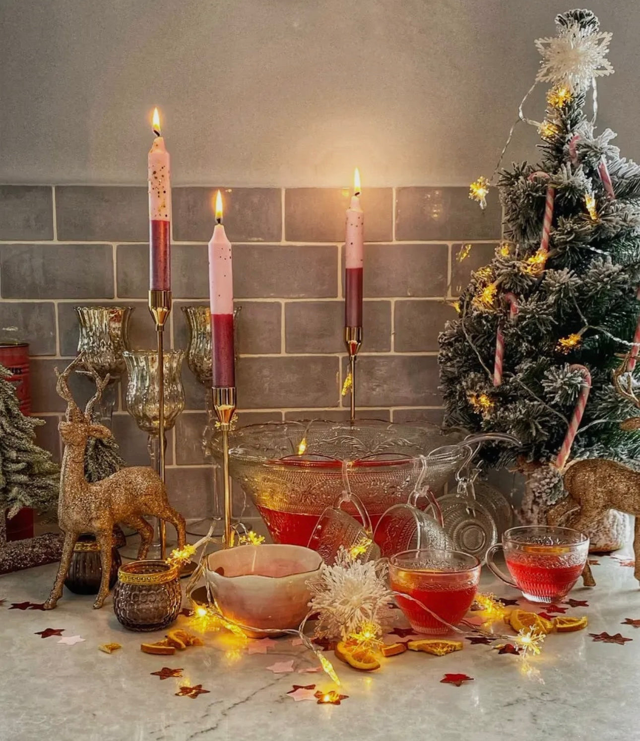 In keeping with the classic clashing trend of red and pink, this festive take on the combination is ready to bring some sparkle to your home. Metallic red, blushing rose, and sprinkled with a little bit of ‘sugar’, these candles look good enough to eat.